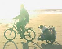 Arthritis was also creeping in, so I obtained a dual buggy and with my father's help, converted it into a dog carrier which attached to my bike. I could continue to transport him to out of the way beaches and also get the exercise that I needed. | ![]() |